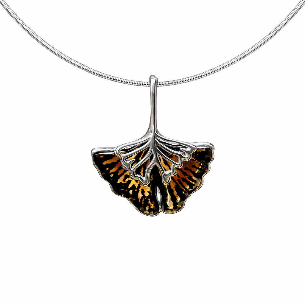 A wonderful pendant inspired by the Ginkgo biloba. Made of 925 silver and cognac Baltic amber. This magical plant carries the symbolism of strength, vitality, hope and brotherhood.